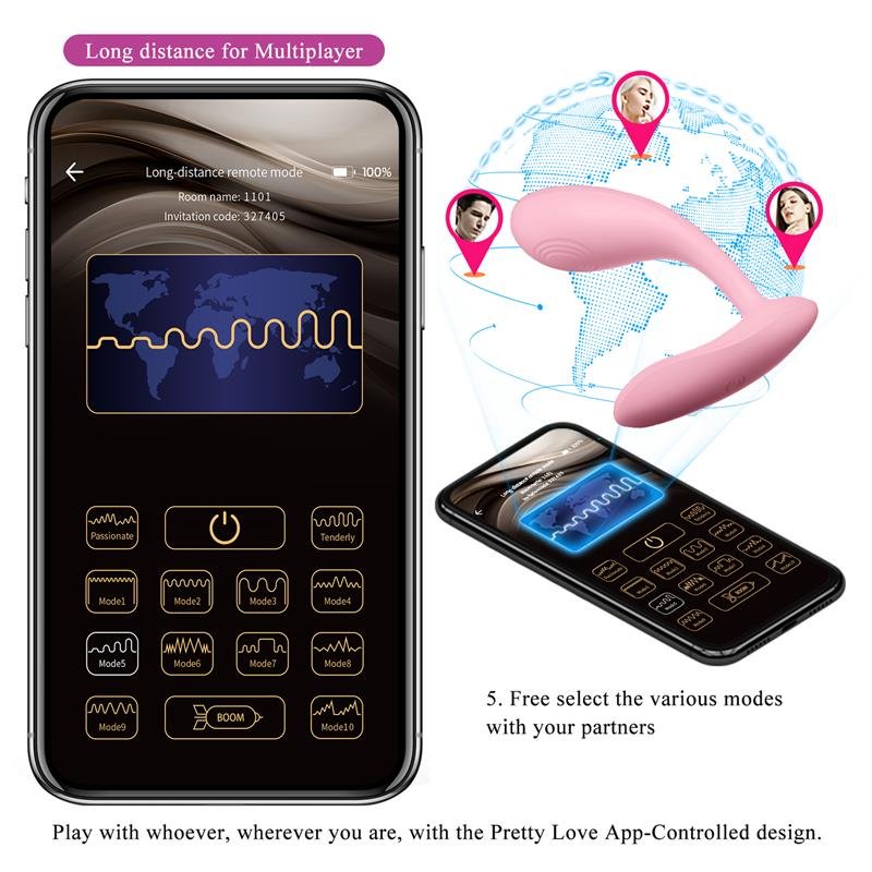 Enjoy pleasure and power that stimulate your G-spot. The wonderful and ergonomic G-Spot APP vibrator from Pretty Love has a velvety, soft-touch surface for greater comfort. Its 12 vibration modes can be controlled directly through the Pretty Love app with 3 main functions: auto mode, immersion mode and music mode, and these functions can be controlled at any time and anywhere in the world (speed control). long distance). Made of silicone and covered with a velvety texture with a soft touch. Characteristics: With Pretty Love APP control 12 vibration functions Long distance control 3 main functions USB rechargeable Silicone
