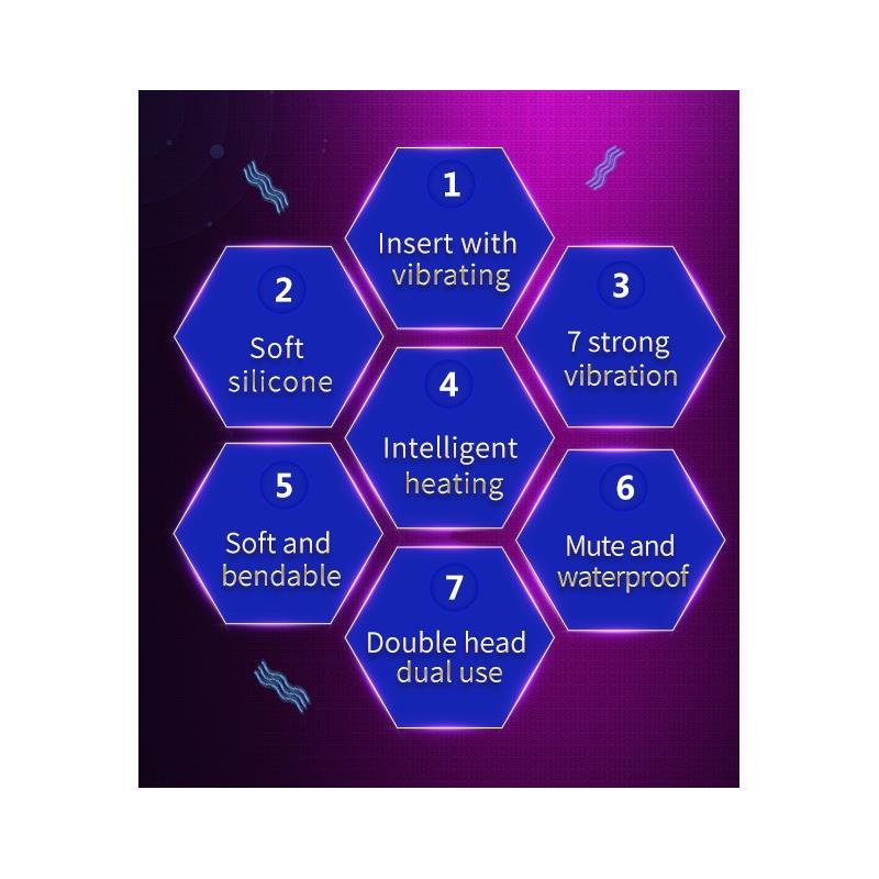 Yoni is a double massager with a spectacular design. Have a head for an external stimulation and another for internal stimulation, pleasure at your fingertips. Its 7 vibration functions and its rotation 7 allow you to try and test until you find your or your favorite functions. It is perfect for solo use, but also to add another touch to your nights with your partner. Its heat function will make it warm up to the pleasant 42ºC while its powerful engine will take you to impressive places full of pleasure. It has medical grade silicone for incredible pleasure and comfort. Its engine is powerful, but it is also silent, so you can take it wherever you want, even to the bathroom, thanks to its waterproofing. Remember to clean your vibrator before and after using it with hot water for proper disinfection. You can charge your toy with magnetic USB and with a basic mobile phone connector, to make it as comfortable as possible. Press the power button for 3 seconds to start traveling between the 7 vibration functions. Same for the 7 oscillation functions. In the stand-by mode, if you press the rotation button you can enjoy the rotation functions. Features: 7 vibration functions 7 rotation functions Rechargeable by magnetic USB and mobile plug Heat function up to 40º Premium silicone + metal Lithium battery 100% waterproof (IP65) Powerful engine Noise level Measurements: Total length: 23 cm Insertable length: 17.4 cm Diameter of the head: 4.2 cm Diameter of the insertable dildo: 3.4 cm