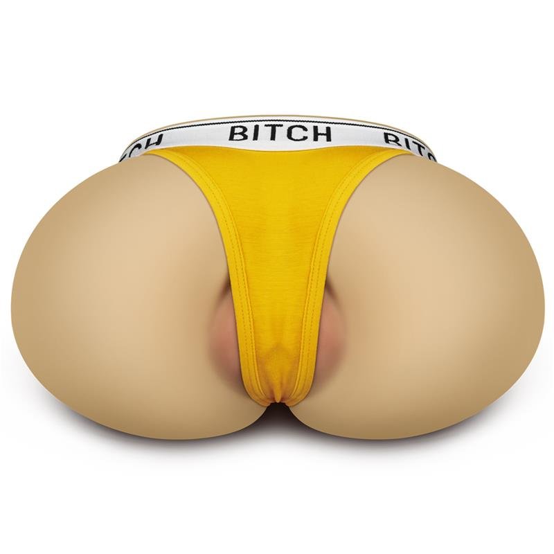 Masturbator with an ideal design. This ass-shaped masturbator features a yellow thong with the word Bitch on it. He is beautifully designed and modeled after a model for a more authentic experience. The insertion of the anus is much tighter and has numerous curves. You will be able to lay her down or hold her close to you while you explore any of her two intricate insertions. Made from body-safe TPE, this ultra-soft, lifelike doll offers an experience that’s non-toxic, gentle on sensitive skin, and safe in every way.Just experiment with it finding the best positions and move it around for maximum fun. Characteristics: Molded after a model textured tunnel double insertion body safe TPE ultra soft and realistic Odorless and non-sticky materials Ergonomic design Free of phthalates and latex
