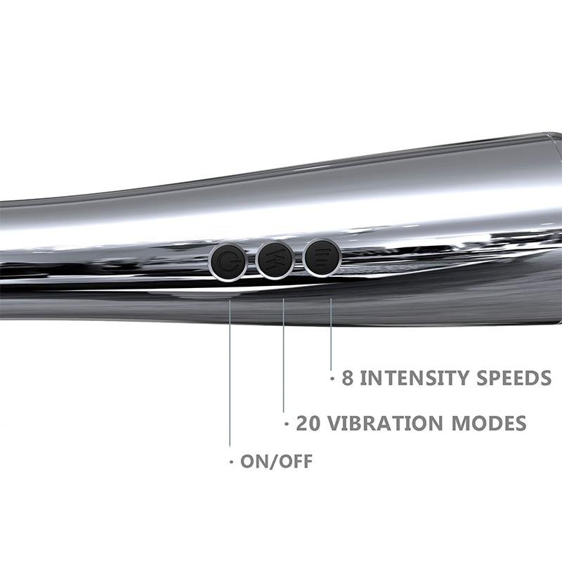 Silvery High-Tech Wand Super Powerful Wireless USB Chrome Silicone